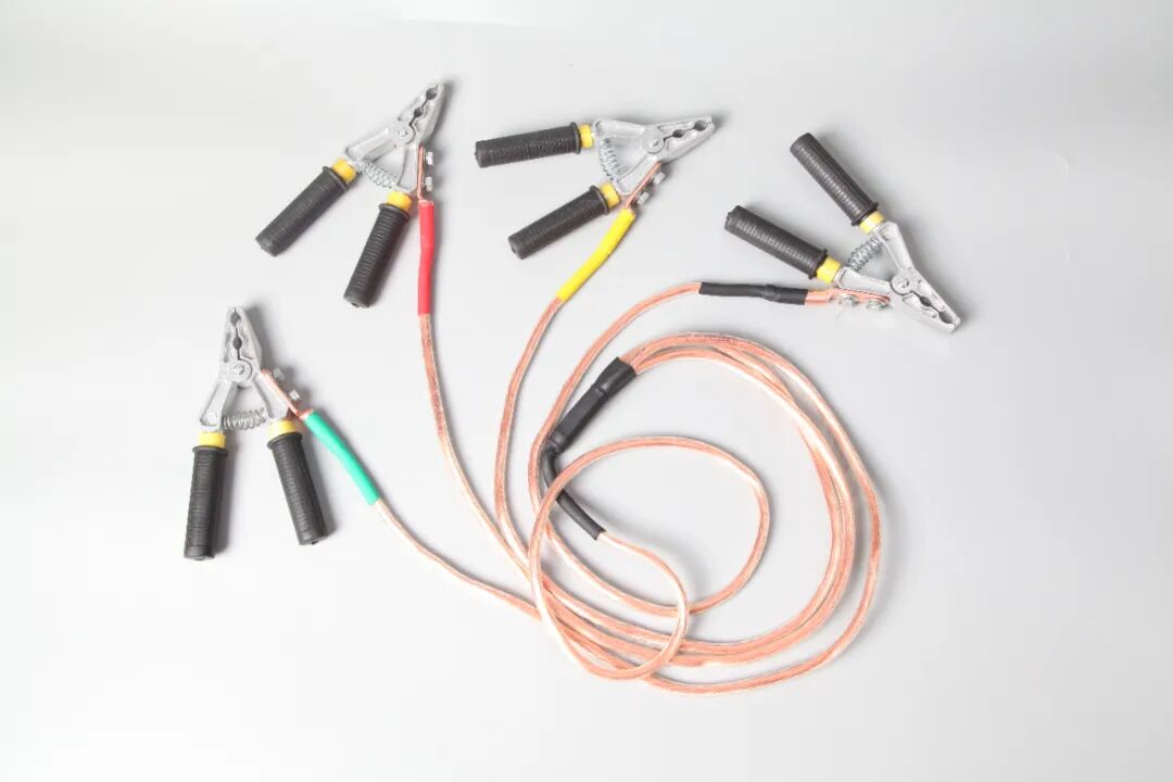 个人保安线应使用有透明护套的多股软铜线,截面积不得小于16mm²,且应带有绝缘手柄或绝缘部件。个人保安线实物如图所示。