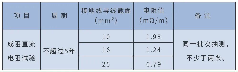 个人保安线的试验方法同携带型接地线一样,其直流电阻应满足下表的要求。